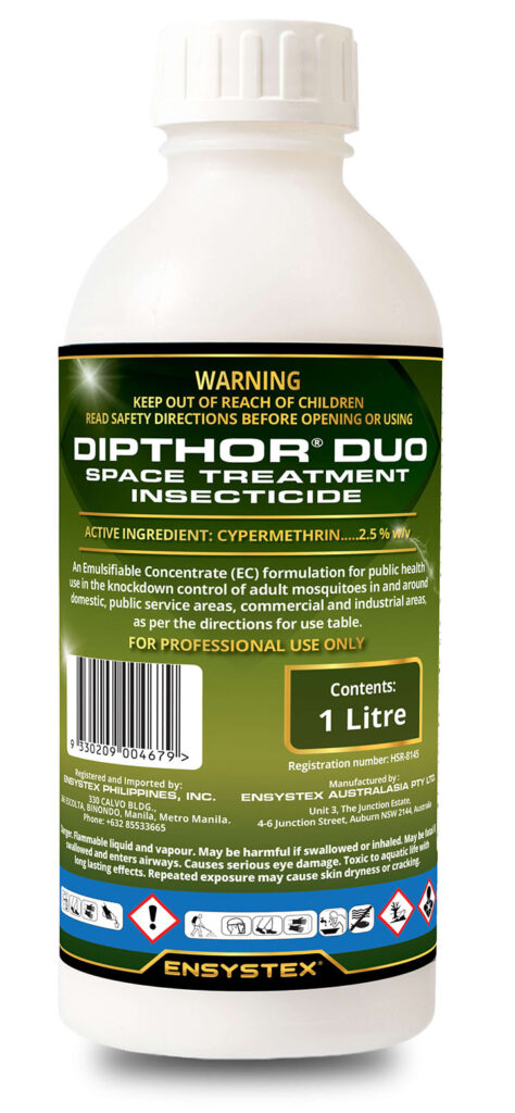 Insecticide for public health. A ULV or Fogging spray for FAST action in the knockdown and kill of flying insect pests and cockroaches, DIPTHOR DUO is simply the best for integrated pest management campaigns.